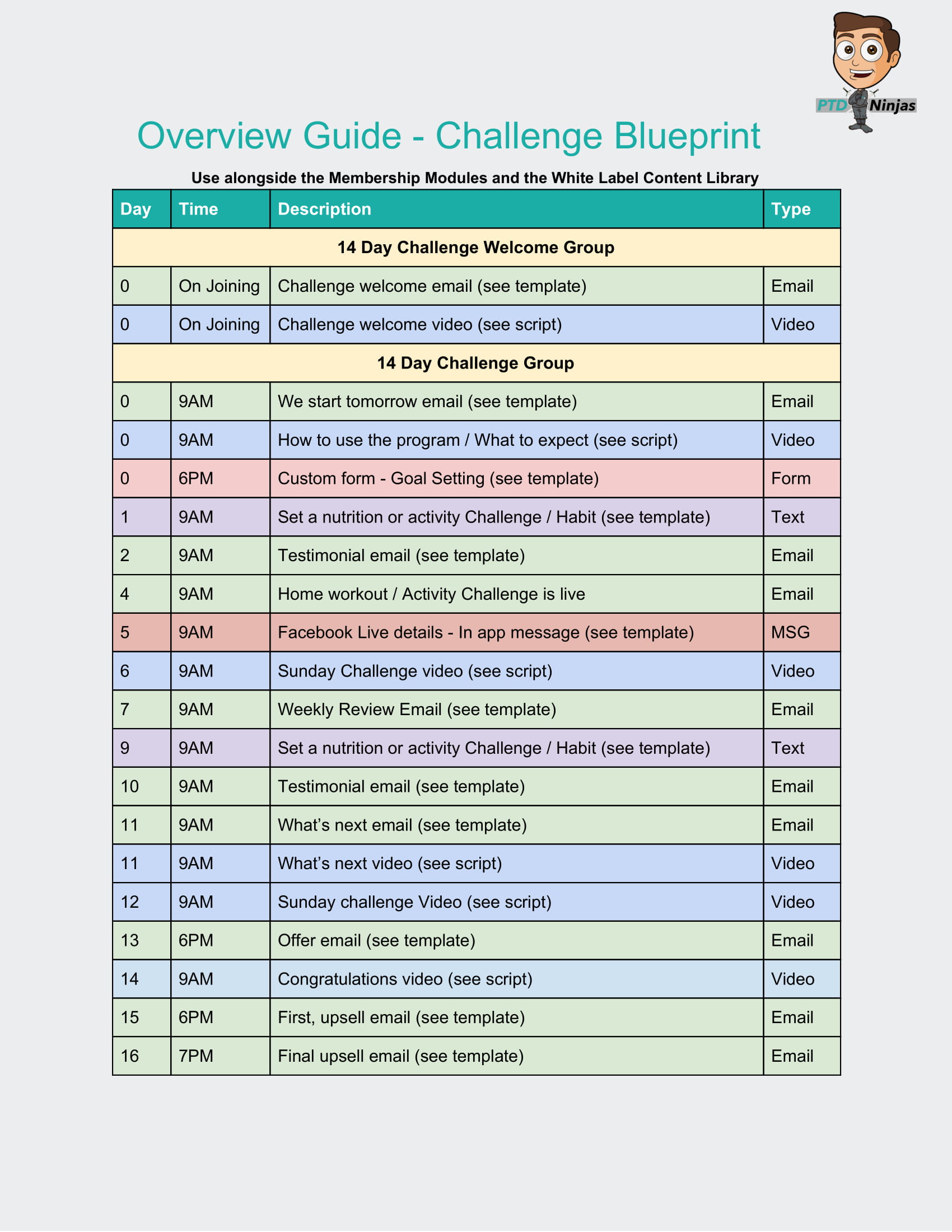 Knowing that you know my top 5 tips, let's take a look at a copy of my Blueprint. I’ve simplified this Blueprint into one simple document to help guide you through what to include in a challenge. Check it out: